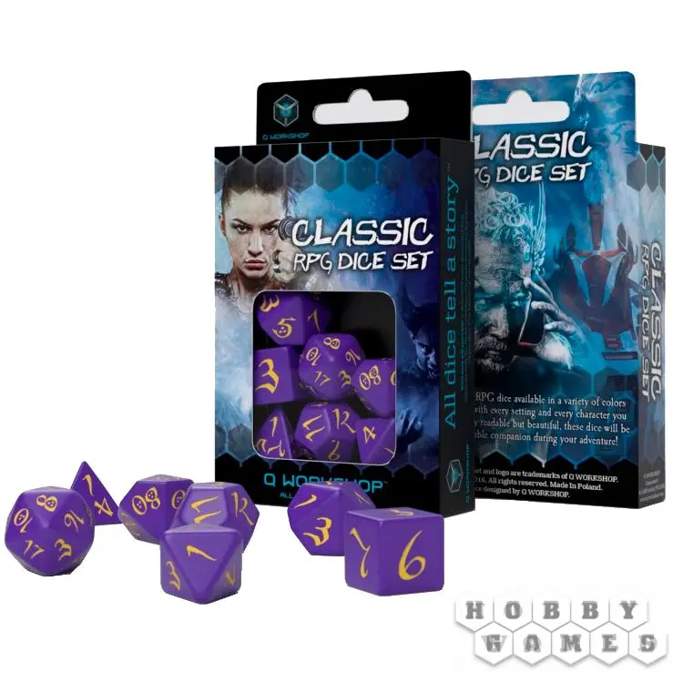 Набор кубиков для RPG "Классика" состоит из 7 кубиков - D4, D6, D8, D10, D12, D20, D100.