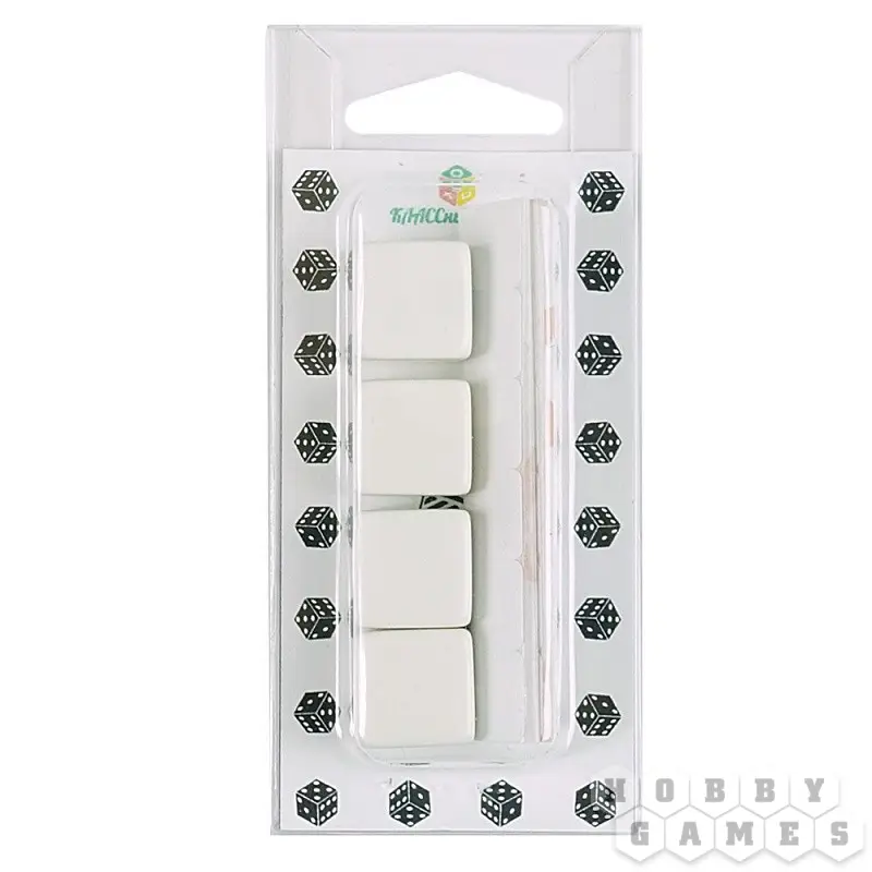 4 кубика "сделай сам" с пустыми гранями, для того, чтобы можно было нанести любые значения или рисунки на грани. К набору прилагается комплект наклеек, для того, чтобы можно было сначала на наклейке нарисовать все что хочешь, а затем уже приклеить свою картинку на кубик. Также на грани можно наносить рисунки с помощью неперманентного (водного) маркера, меняя значения/рисунки по мере изменения целей игры или обучения.