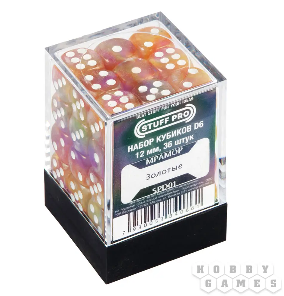 Набор кубиков D6 "Под мрамор" золотые (36 шт.)