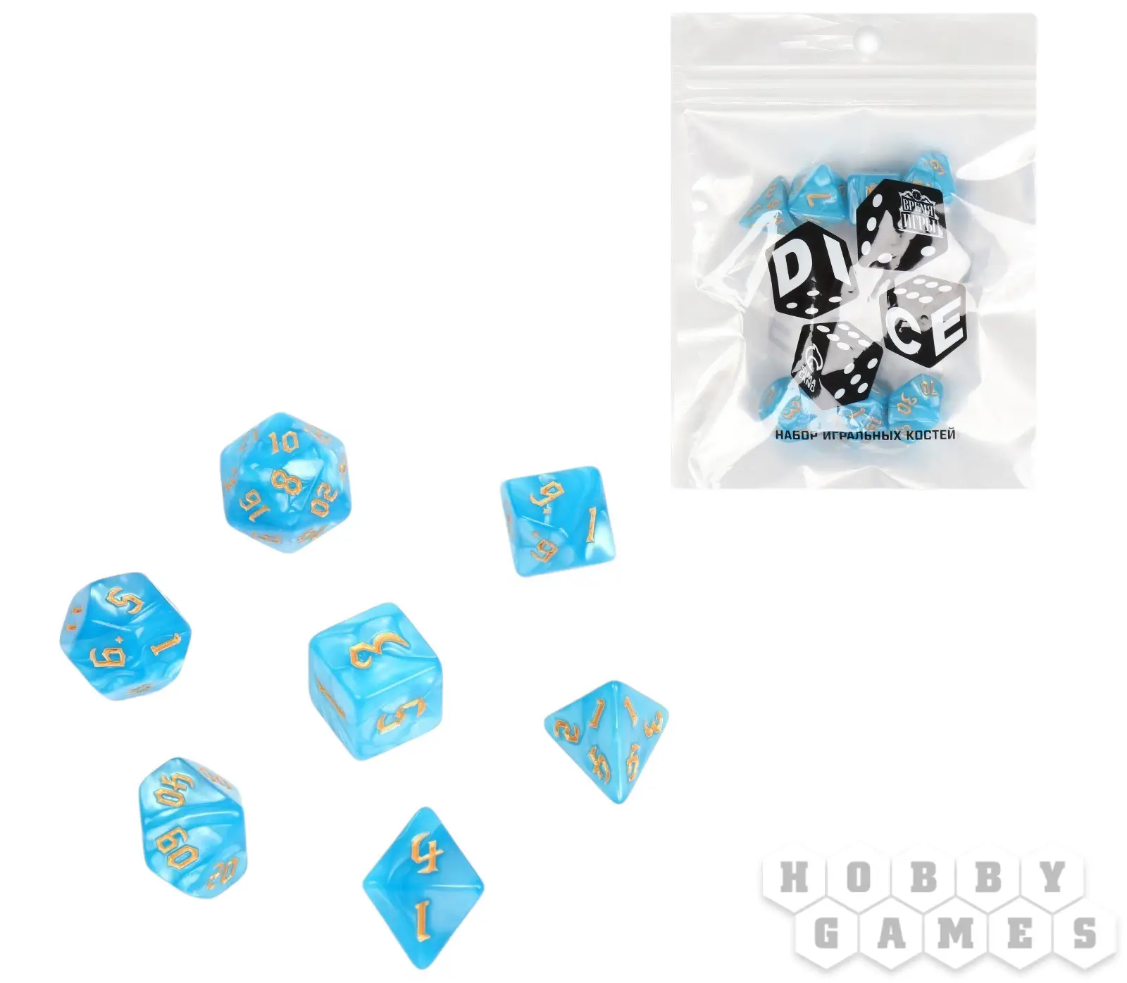 Набор кубиков "Время игры" для D&D, 7 шт. (голубые)