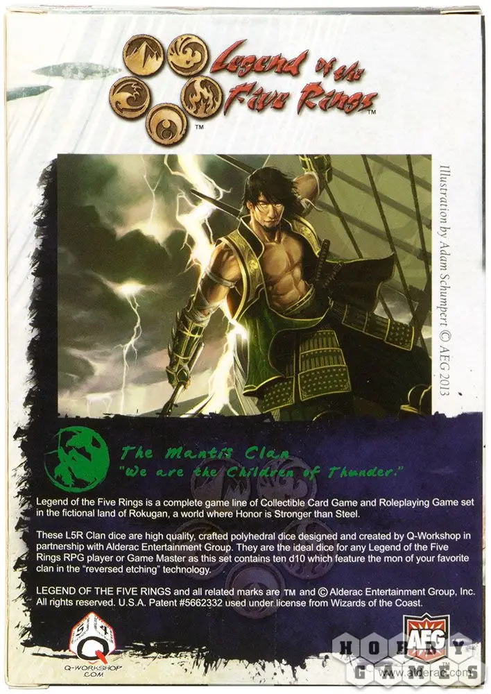 Этот набор кубиков для карточной игры Legend of the Five Rings прекрасно подойдёт как для игроков, так и для мастеров игры. Внутри набора вас ждут десять кубиков D10, выполненных в стилистике одного из могущественных кланов, представленных в игре. Также на поверхностях дайсов вы найдёте герб того или иного клана.