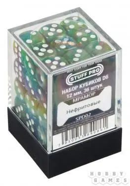 Набор кубиков STUFF PRO D6 под мрамор. Нефритовые 12 мм, 36 шт., Китай