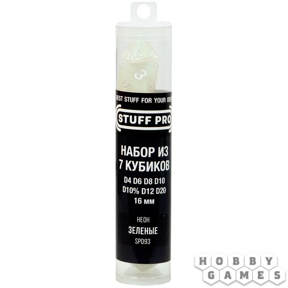 Набор кубиков STUFF PRO для ролевых игр, 16 мм, неон зелёные