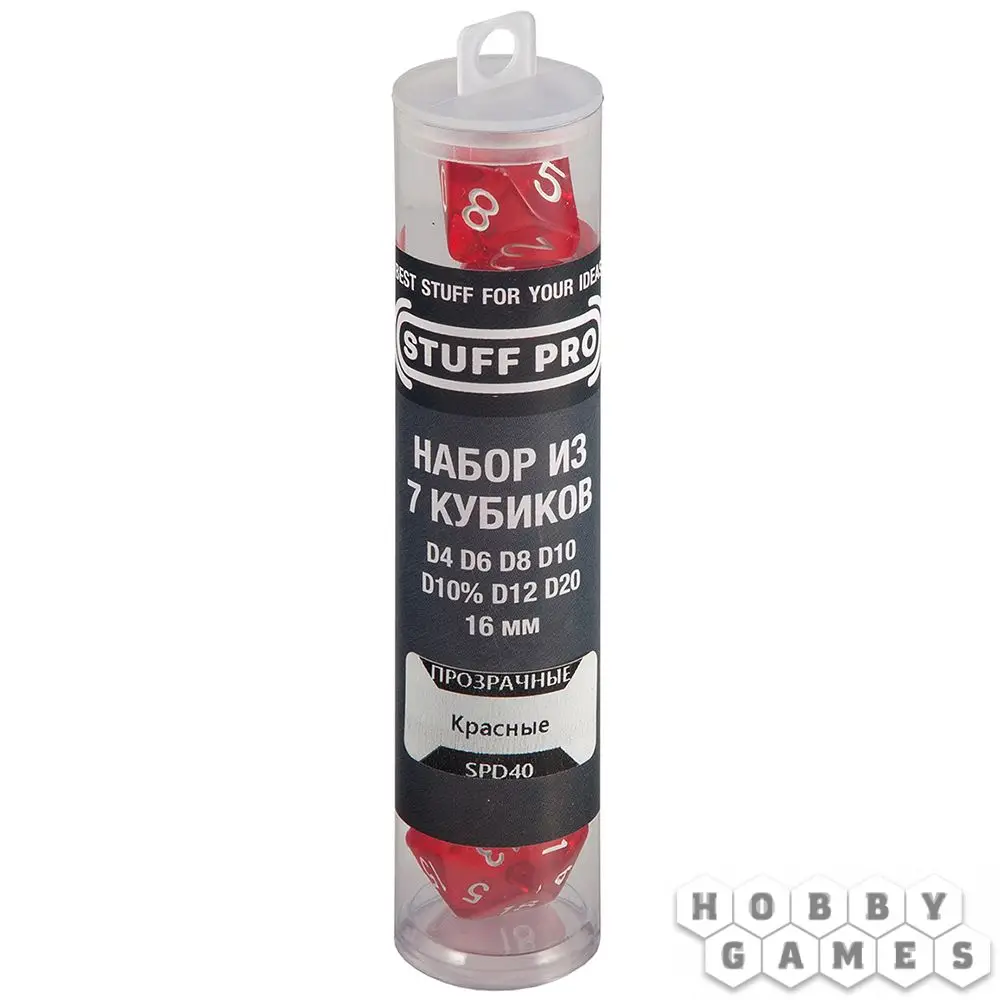 Набор кубиков STUFF PRO для ролевых игр, 16 мм, прозрачные красные