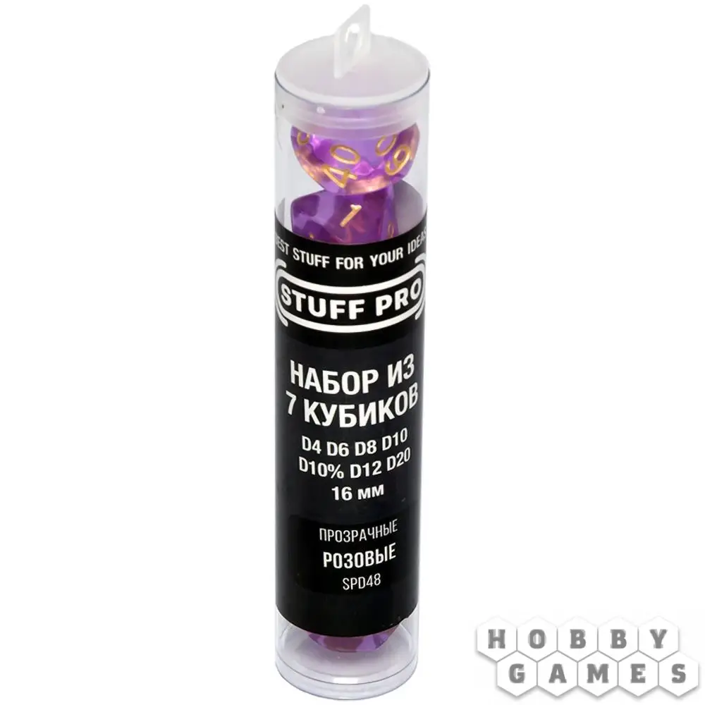 Набор кубиков STUFF PRO для ролевых игр, 16 мм, прозрачные розовые