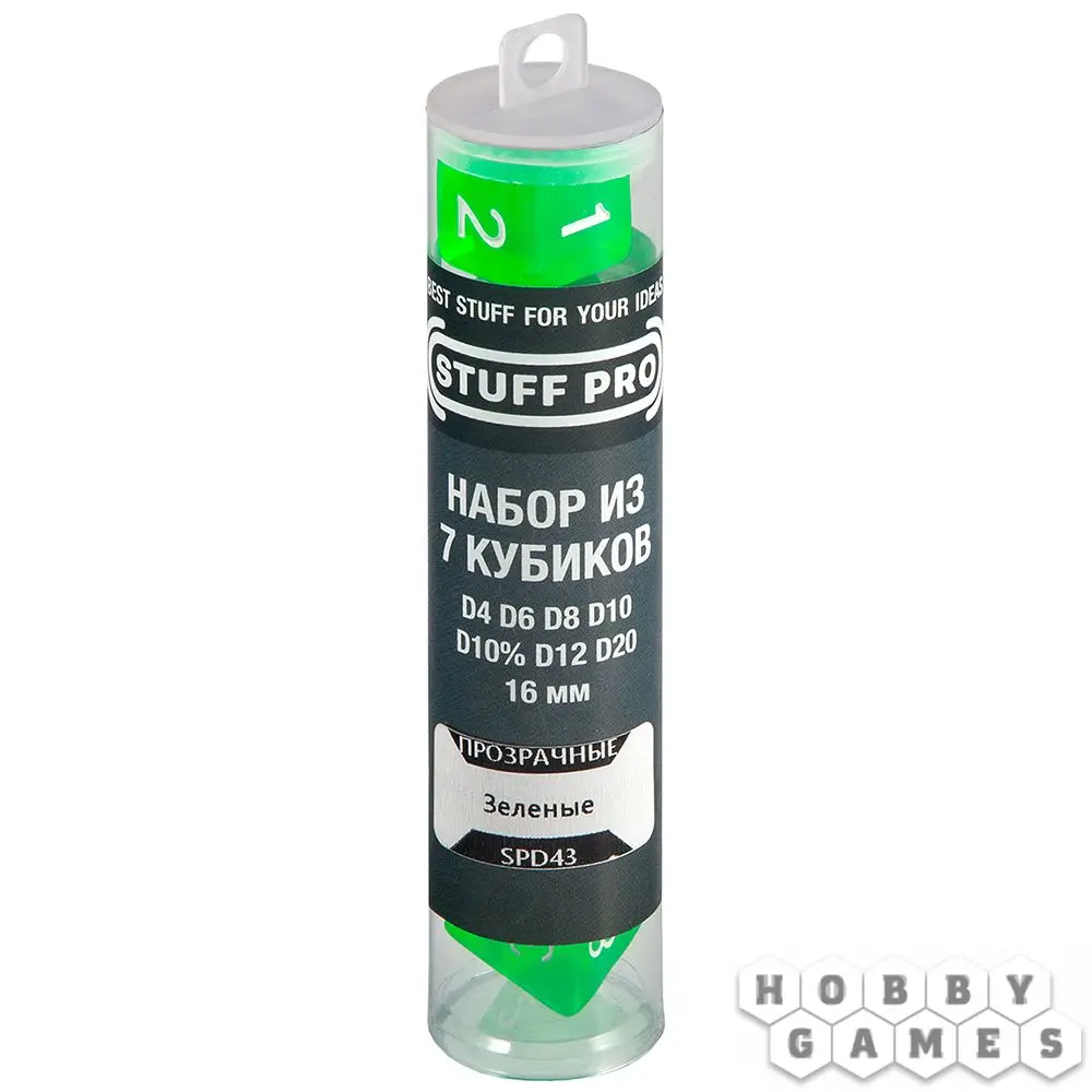 Набор кубиков STUFF PRO для ролевых игр, 16 мм, прозрачные зелёные