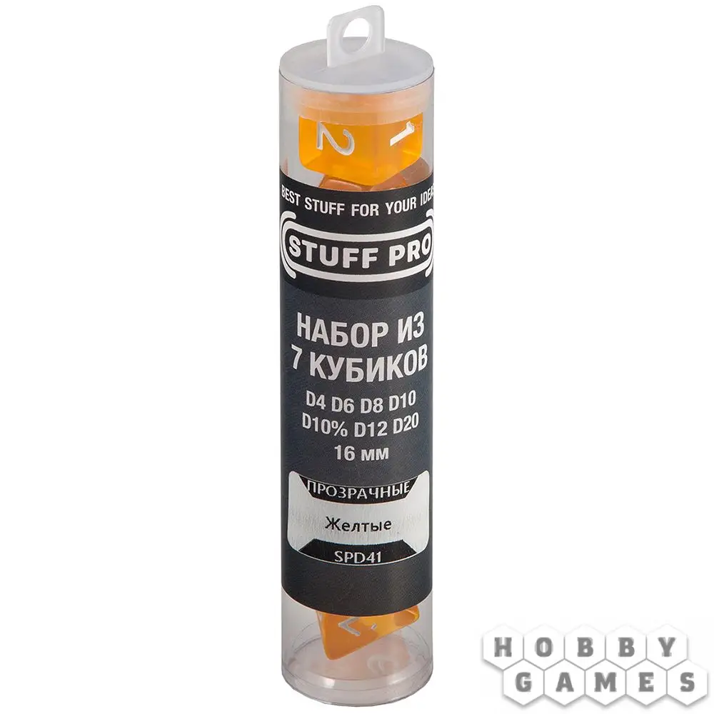 Набор кубиков STUFF PRO для ролевых игр, 16 мм, прозрачные жёлтые