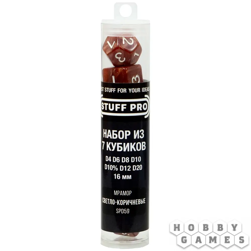 Набор кубиков STUFF PRO для ролевых игр, 16 мм, светло-коричневые под мрамор
