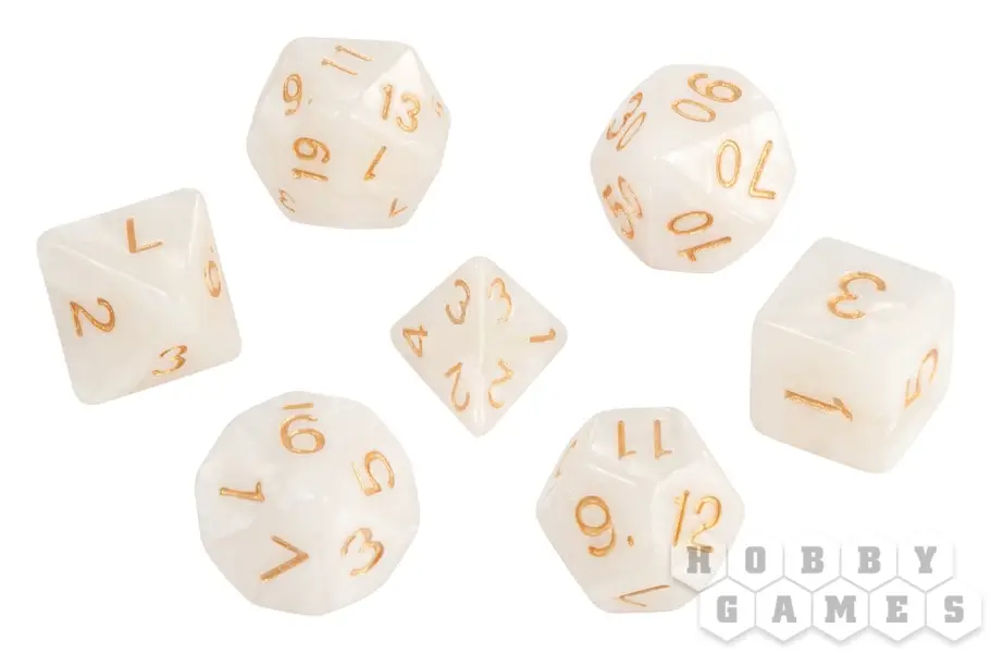 Набор кубиков STUFF PRO для ролевых игр под мрамор. Белые с золотым, Китай