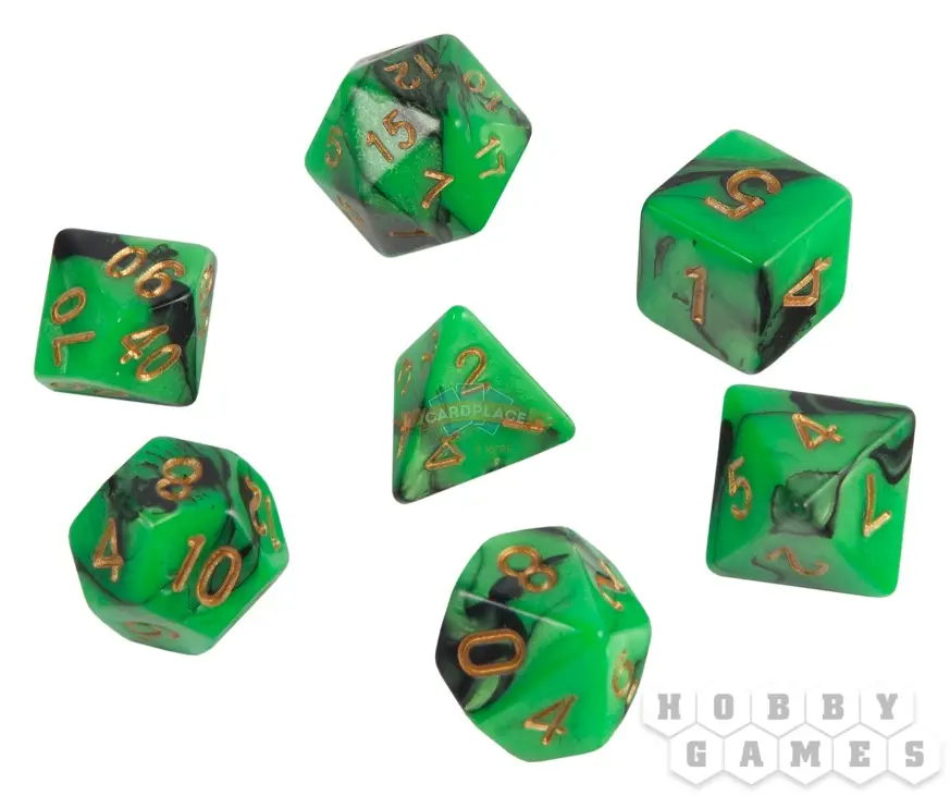 Набор кубиков STUFF PRO для ролевых игр под мрамор. Блестящие зеленые, Китай