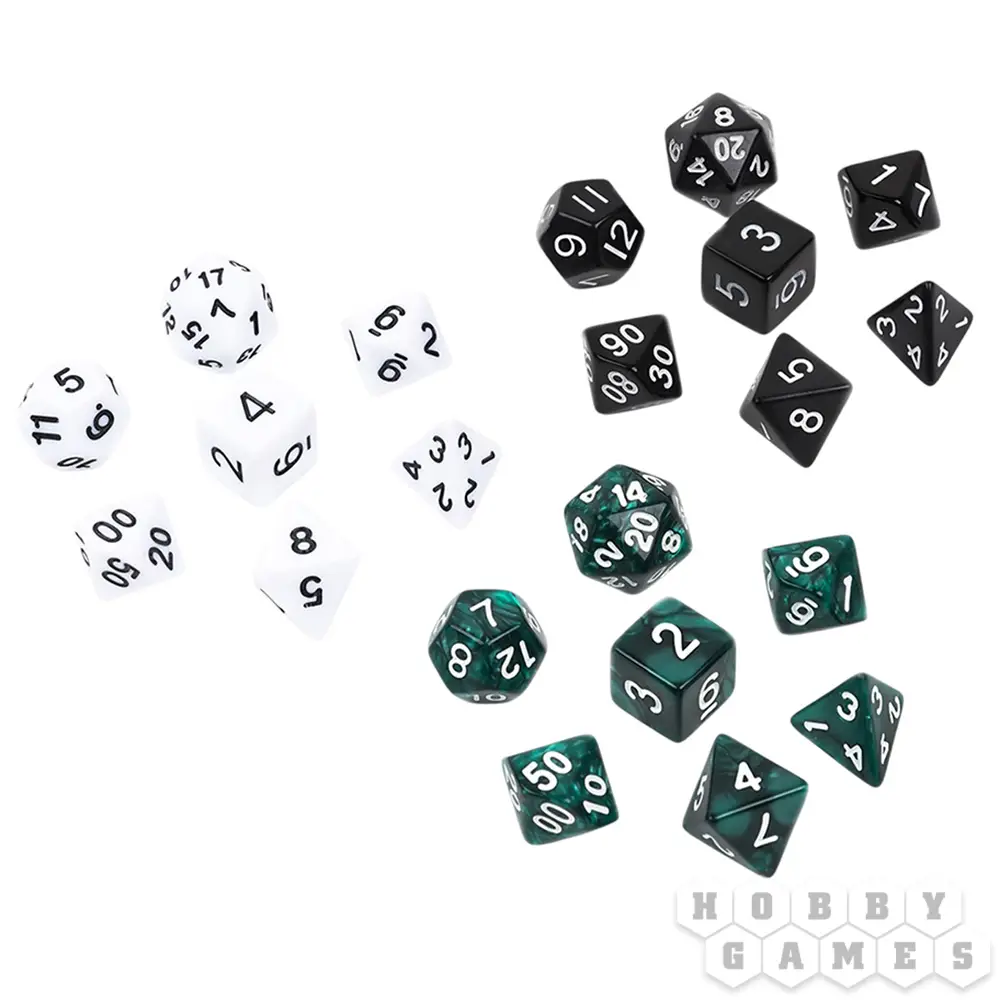 Набор кубиков "Время игры" для D&D, 21 шт. (белые, чёрные, зелёные)