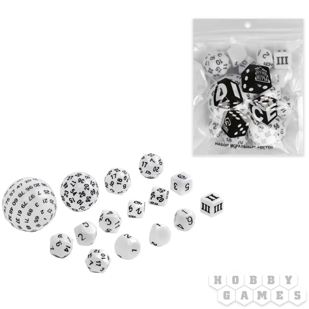 Набор кубиков "Время игры" для D&D, 15 шт. (белые)