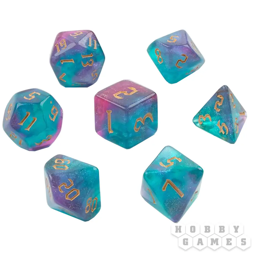 Наборы кубиков для ролевых игр решают проблему покупки необходимых дайсов. В наборе содержатся семь кубиков: D4, D6, D8, D10, D10%, D12 и D20.
