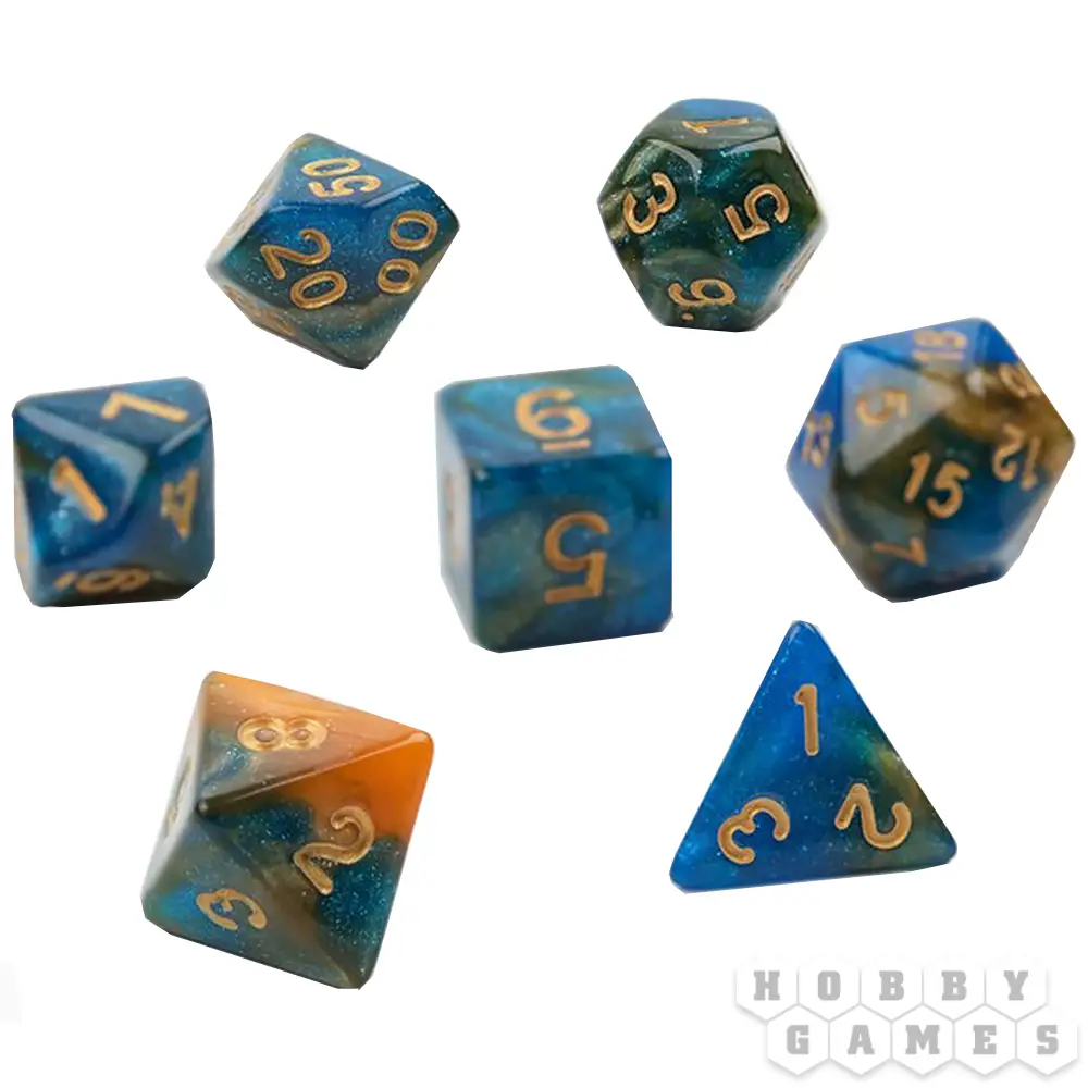 Набор кубиков "Время игры" для D&D, 7 шт. (коричнево-синие)