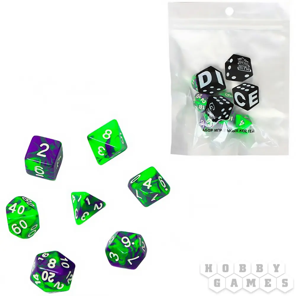 Набор кубиков "Время игры" для D&D, 7 шт. (нефрит)