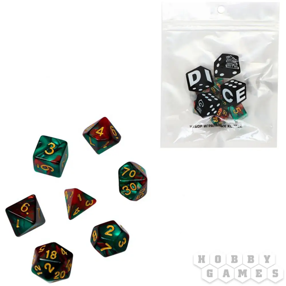 Набор кубиков "Время игры" для D&D, 7 шт. (зелёно-красные)