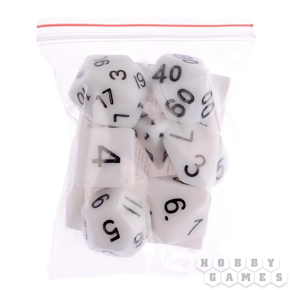 Наборы кубиков для ролевых игр решают проблему покупки необходимых дайсов. В наборе содержатся семь кубиков: D4, D6, D8, D10, D10%, D12 и D20.