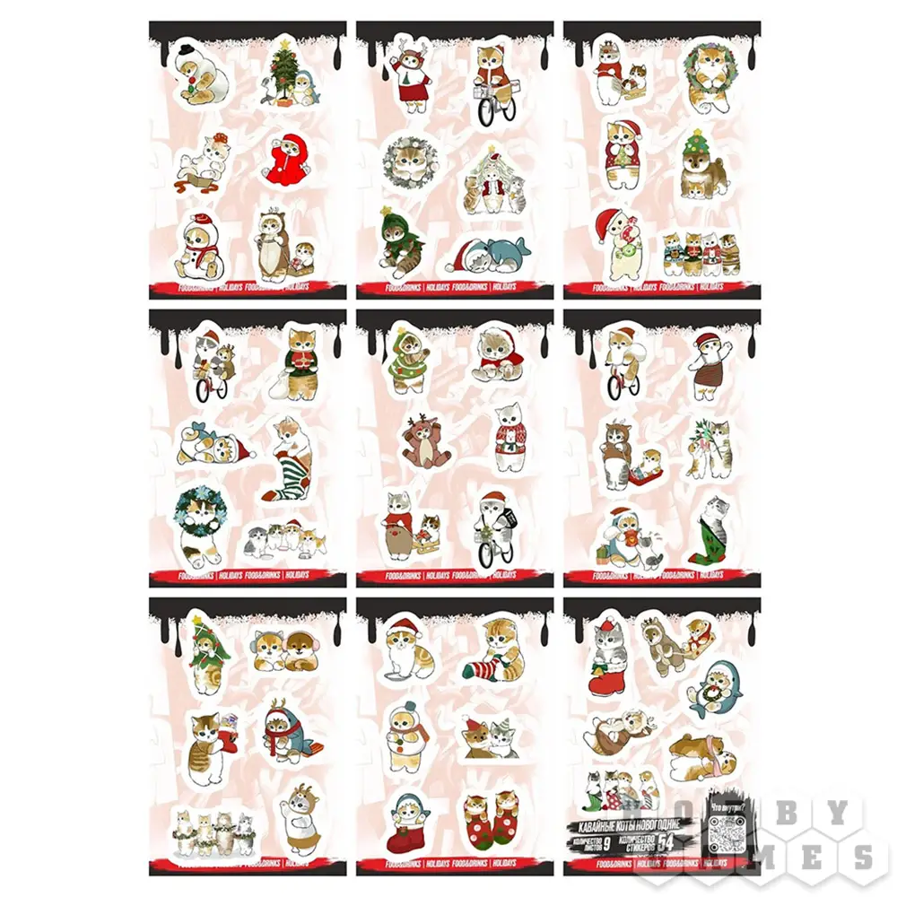 Набор наклеек "Кавайные коты. Новогодние" (54 шт.)
