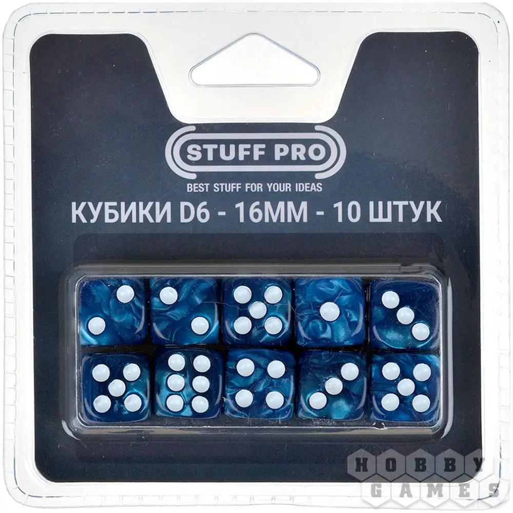 Набор нефритовых кубиков D6 Stuff Pro, 10 шт. (16 мм, синие)