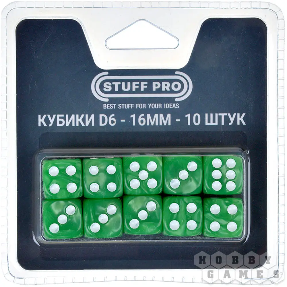 Набор нефритовых кубиков D6 Stuff Pro, 10 шт. (16 мм, зеленые)