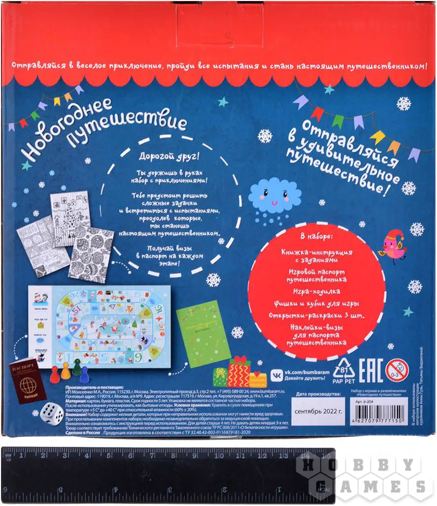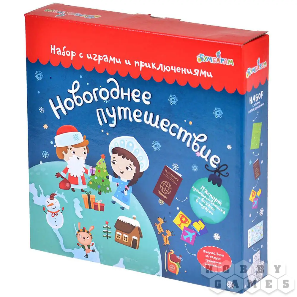 В данном наборе вы найдёте целый кладезь новогодних подарков: тут и игра-ходилка, и открытки, и книжка с заданиями! Выполняя их, ребёнок будет получать наклейки для своего паспорта путешественника – самое время отправиться в насыщенное новогоднее приключение!