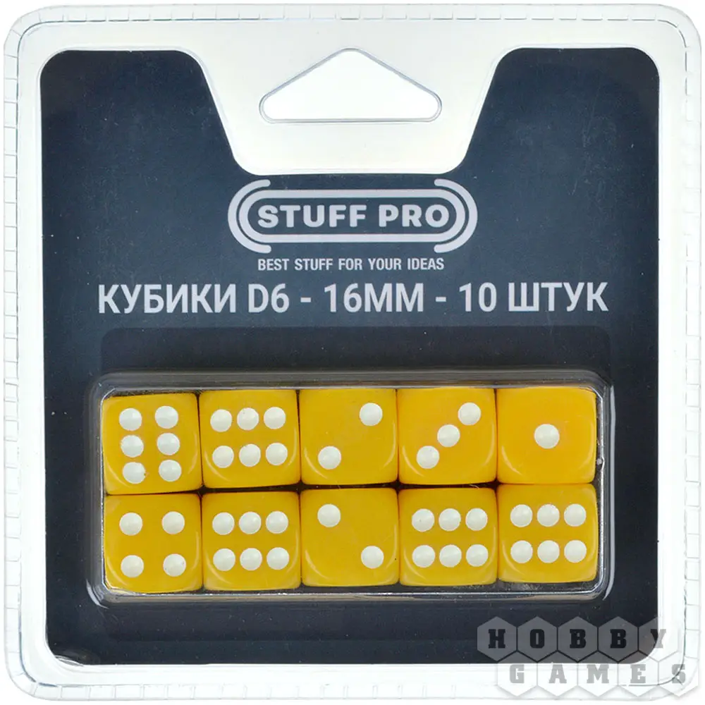 Набор стандартных кубиков D6 Stuff Pro, 10 шт. (16 мм, жёлтые)