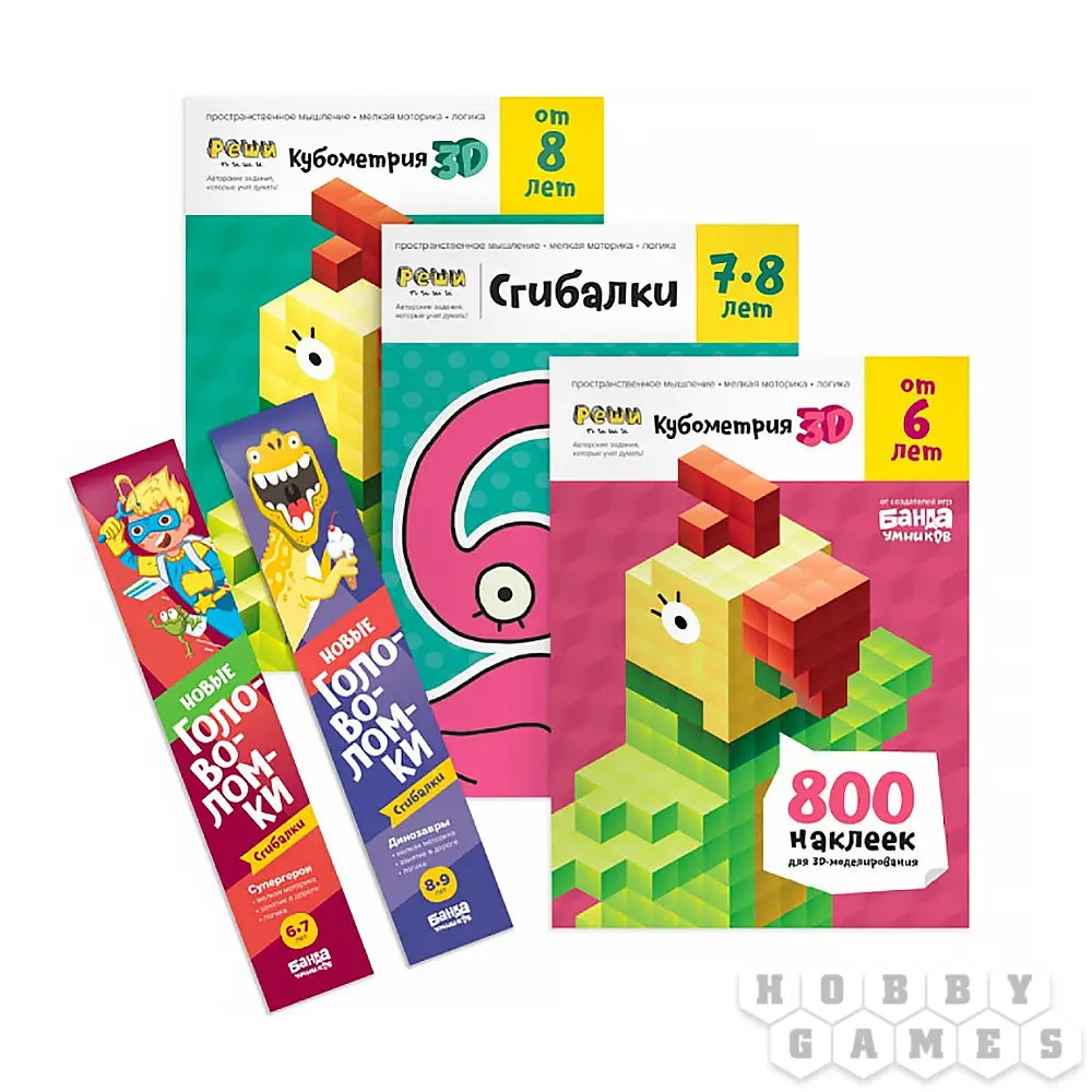 Набор ярких тетрадей "Реши-пиши" предназначен для детей младшего школьного возраста. Они помогут ребенку развить логику, мелкую моторику, мышление и подготовить руку к письму. Обучение по тетрадям с яркими картинками принесет радость и удовольствие. Тетради из серии "Кубометрия" развивают трёхмерное мышление и знакомят с проекциями. Тетради "Сгибалки" — это умные упражнения на логику и мелкую моторику.