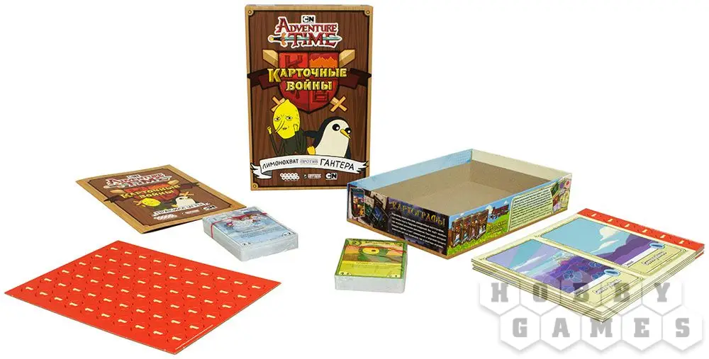 В новой части серии "Время приключений. Карточные войны" лицом к лицу сталкиваются граф Лимонохват и пингвин Гантер. В основе стратегии Лимонохвата – подсовывание противнику слабых существ, которые только вредят и занимают место. В карты из колоды графа предпочитают песчаные земли и кукурузные поля. Противостоит же ему пингвин Гантер и его друзья, предпочитающие ледяные земли.Причём Гантер может замораживать чужие пейзажи, изменяя ландшафт под себя. Как и все остальные наборы серии, "Лимонохват против Гантера" состоит из двух готовых колод по 40 карт – их можно достать из коробки и сразу играть, игра полностью самостоятельна, а смешивая её карты с картами других частей вы сможете создавать собственные уникальные колоды. Узнайте, кто сильнее – ледяной спецназ или огнедышащие арашютисты!