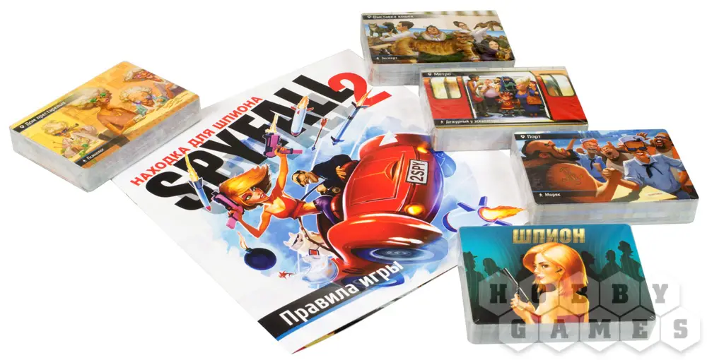 Уникальный игровой процесс салонного разговорного типа – в игре нет ведущего, шпион должен вычислить место пребывания и отвести все подозрения от себя, в то время как другие игроки пытаются понять, кто же шпион, задавая друг другу наводящие вопросы о локации. Игра в кошки-мышки длится до тех пор, пока кто-то не ошибётся или не совершит верную догадку!