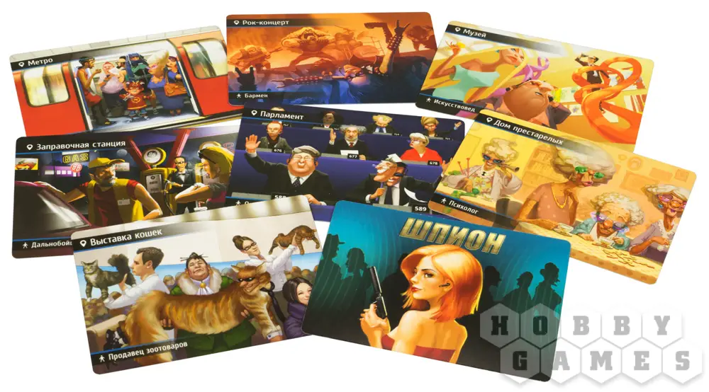 Шпион может остановить игру и назвать текущую локацию – если угадал, то победа за ним