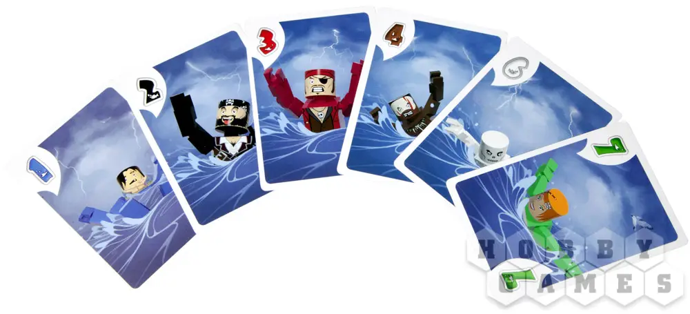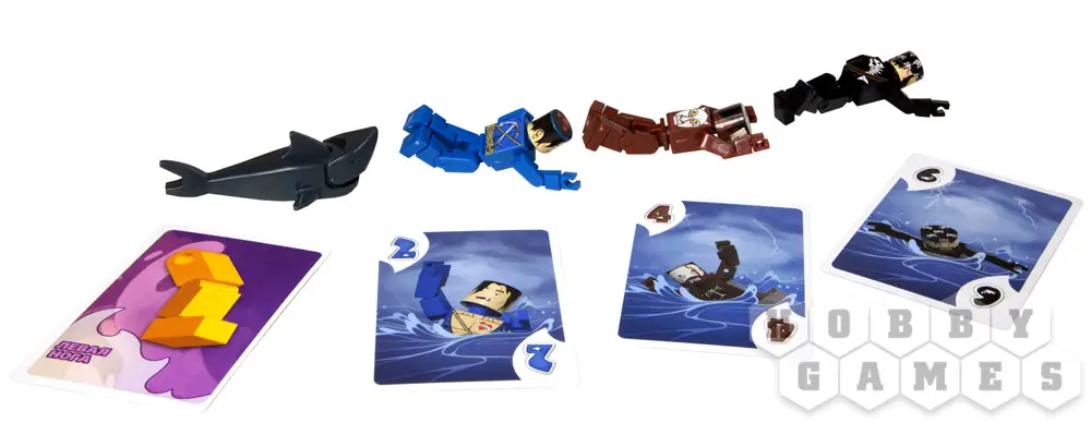 Заплыв — в эту фазу игроки сравнивают значение на выложенных картах и перемещают своих роботов-пиратов;