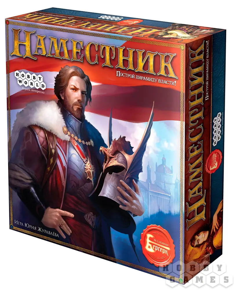 «Наместник» — это настольная игра для 1–4 участников в возрасте от 12 лет. В борьбе за власть над фэнтезийным миром Лаар игроки привлекают на свою сторону разнообразных союзников — от странников до кронпринцев — и выпускают всевозможные законы. По ходу игры каждый участник выстраивает собственную пирамиду власти, наращивая военную и магическую мощь своего государства, развивая науку, увеличивая собственное могущество и добывая драгоценные камни для дальнейшего развития.