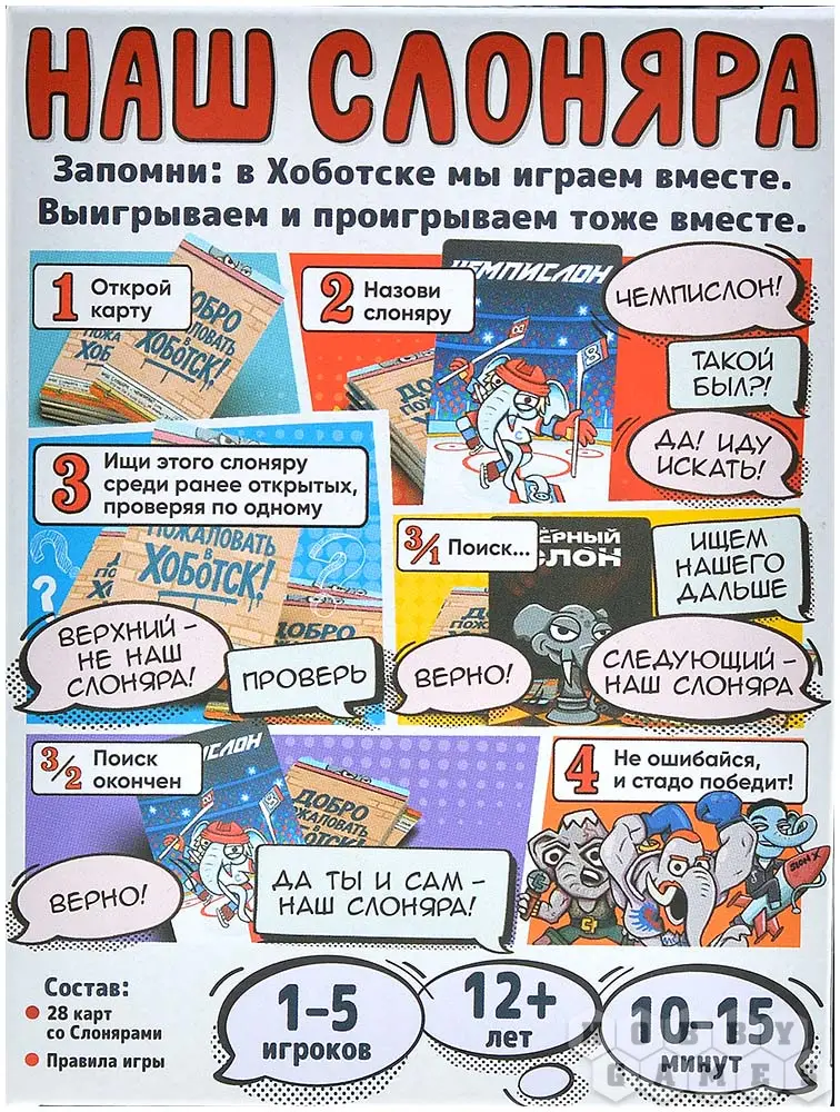 Это не просто набор карт – это ваше стадо, ваша семья. Только от вашей памяти и единства зависит, сможете ли вы вместе добиться великой цели и стать настоящими Нашими Слонярами!