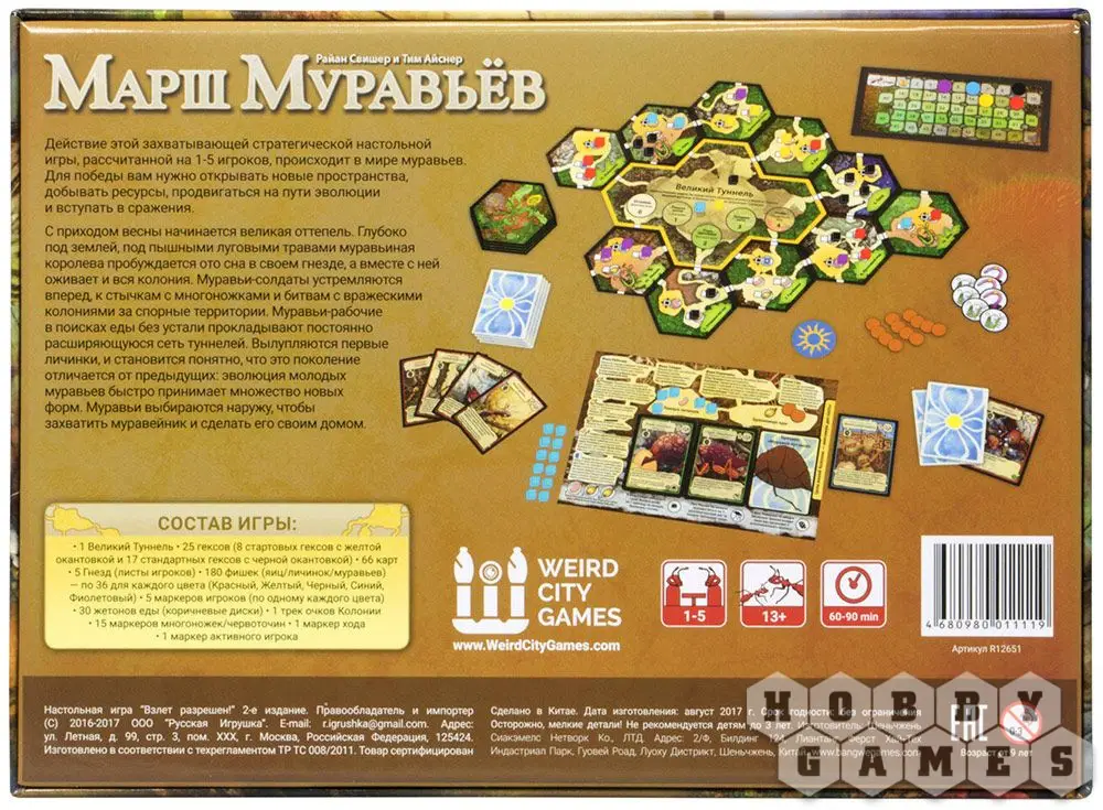 Настольная игра “Марш Муравьев” перенесет вас в мир, который скрыт под землей, раскинут под тенистыми травами. Там обитают крошечные создания, жизнь которых полна борьбы и опасностей.