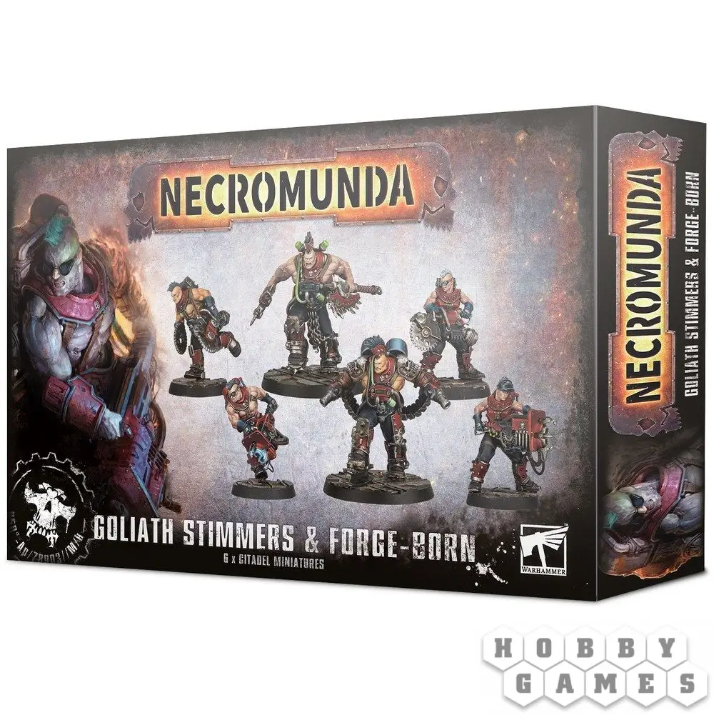 Этот детализированный пластиковый набор содержит сто двенадцать деталей, из которых можно собрать двух Химиков Голиафов, один вооружён парными пульверайзерами, а второй – парными штурмовыми гранатомётами. Также из набора собирается четыре Кузнерождённых, два из которых вооружены сварным аппаратом, а двое других – тяжёлой пилой по камню. Внутри коробки вы найдёте две круглые 40-миллиметровые и четыре круглые 25-миллиметровые подставки для игры Necromunda.