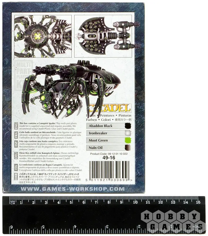 Когда дело доходит до устрашающих механических созданий, вы не найдёте ничего более отвратительного, чем Каноптековый паук. Он может быть использован как для уничтожения вражеской пехоты и танков с помощью крюков и лезвий, так и для ремонта собственных боевых единиц армий Некронов. Охлаждающий модуль (или чип) на главной плате позволяет Каноптековому пауку даже в условиях жаркой битвы повышать эффективность ваших боевых единиц и выводить из строя врагов.