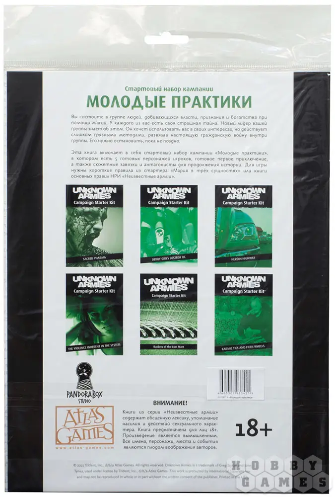 Ваша компания – отбросы оккультного мира, вычеркнутые из его жизни. Второго шанса не будет, поэтому вы объединились в борьбе за власть и богатство, рассчитывая вместе урвать кусок получше. Но ваш лидер тяжело заболел, а его заместитель не гнушается совершенно никакими грязными средствами – и его срочно надо остановить. В приключении "Молодые практики" также содержатся сокращённые правила игры, связанные с магическими школами Катаромантии и Плутомантии, а также Аватарами Двуликий, Обнажённая богиня и Самый ценный игрок.