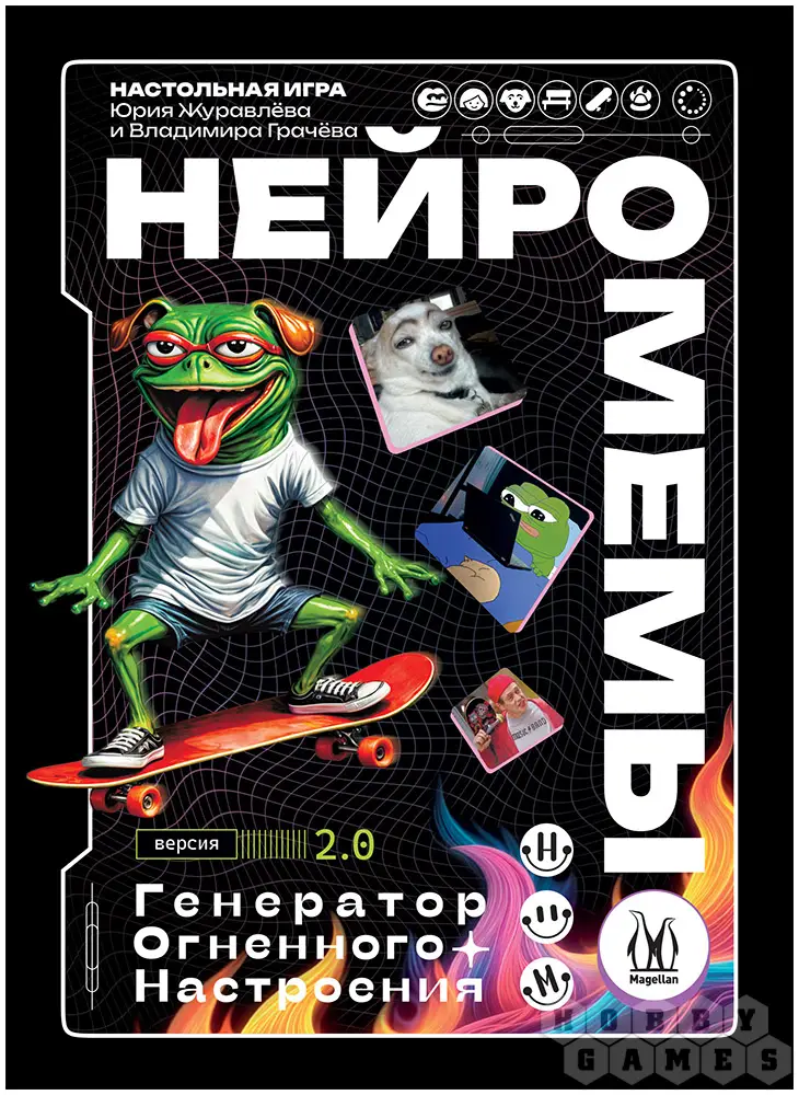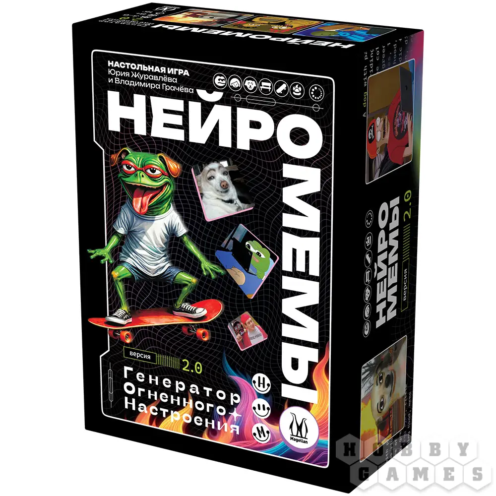 "Нейромемы 2.0: Генератор огненного настроения" – это новая весёлая игра в серии "Нейромемы". Встречайте чуть изменённую механику, которая добавит разнообразия игровому процессу, и новый набор карт. Теперь вас ждёт ещё больше мемов, а значит, ещё больше юмора и смеха – идеальный микс для любой вечеринки! Рассматривайте мэшапные картинки, ищите в них свои любимые приколы и собирайте криптомонетки, чтобы победить!