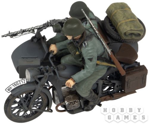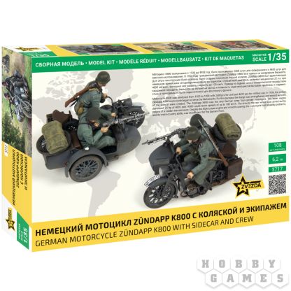 Мотоцикл Zündapp K800 выпускался в Германии с начала 1930-х годов и стал одной из моделей, использовавшихся как в гражданской, так и в военной сферах. С 1934 года модифицированная версия была принята на вооружение вермахта – её усилили для армейских нужд и дооснастили различными вариантами колясок. Особенностью K800 стал четырёхцилиндровый оппозитный двигатель мощностью 22 л.с., что делало его уникальным среди мотоциклов немецкой армии. Несмотря на удачность конструкции, мотоцикл оказался малопригодным для условий фронта, особенно в сложных ландшафтах Восточной Европы.