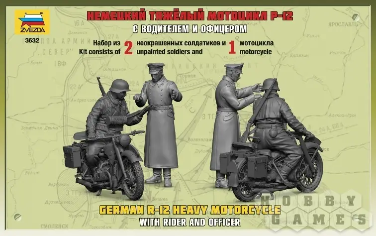 Этот набор включает две фигурки: водителя мотоцикла и офицера, а также высокодетализированную модель мотоцикла с коляской. Он станет отличным дополнением коллекции как для моделистов, так и для коллекционеров, воссоздающих атмосферу Второй мировой.