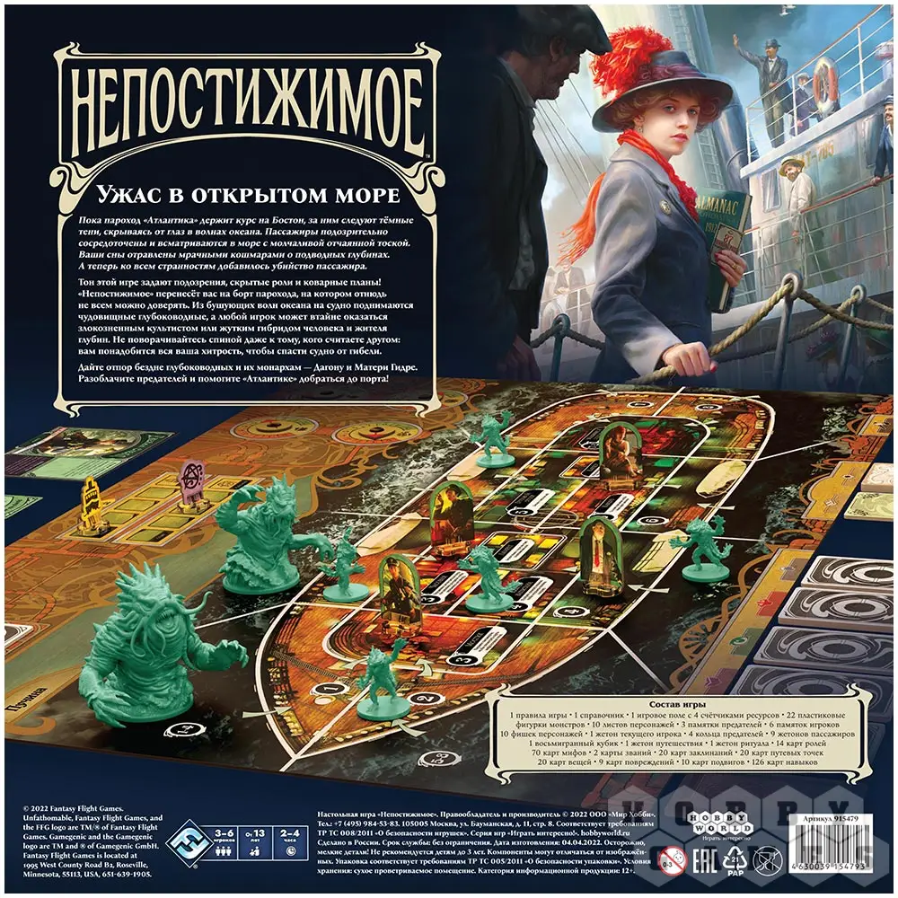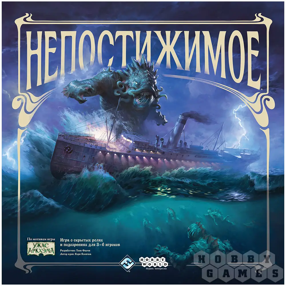 "Непостижимое" – это настольная игра, созданная по мотивам лавкрафтовских мифов в стилистике "Ужаса Аркхэма" и на основе легендарной Battlestar Galactica. В этой командной игре со скрытыми ролями пассажиры противостоят лезущим из моря чудовищам, которых возглавляют Отец Дагон и Мать Гидра, одновременно вычисляя притаившихся на борту культистов-гибридов.