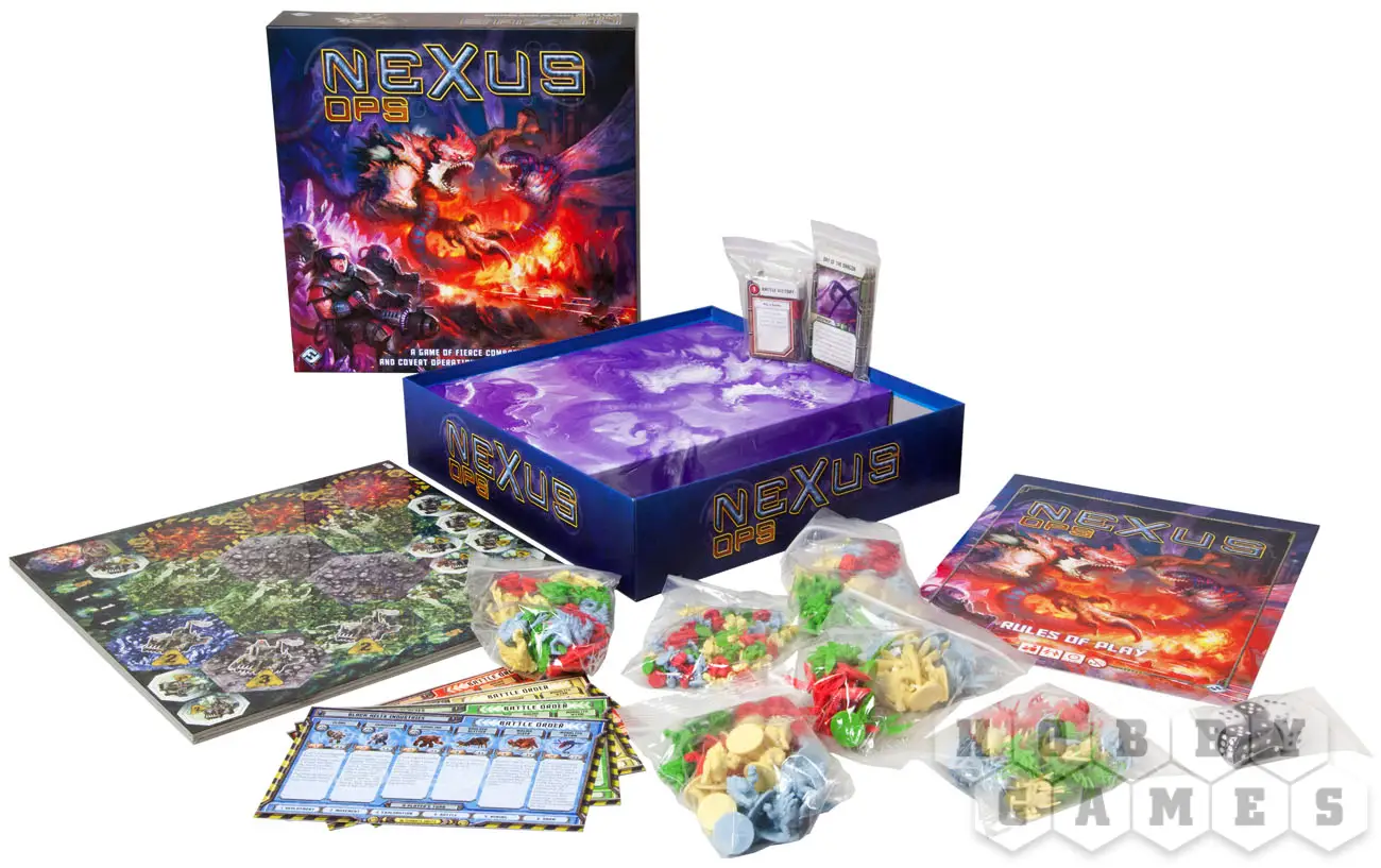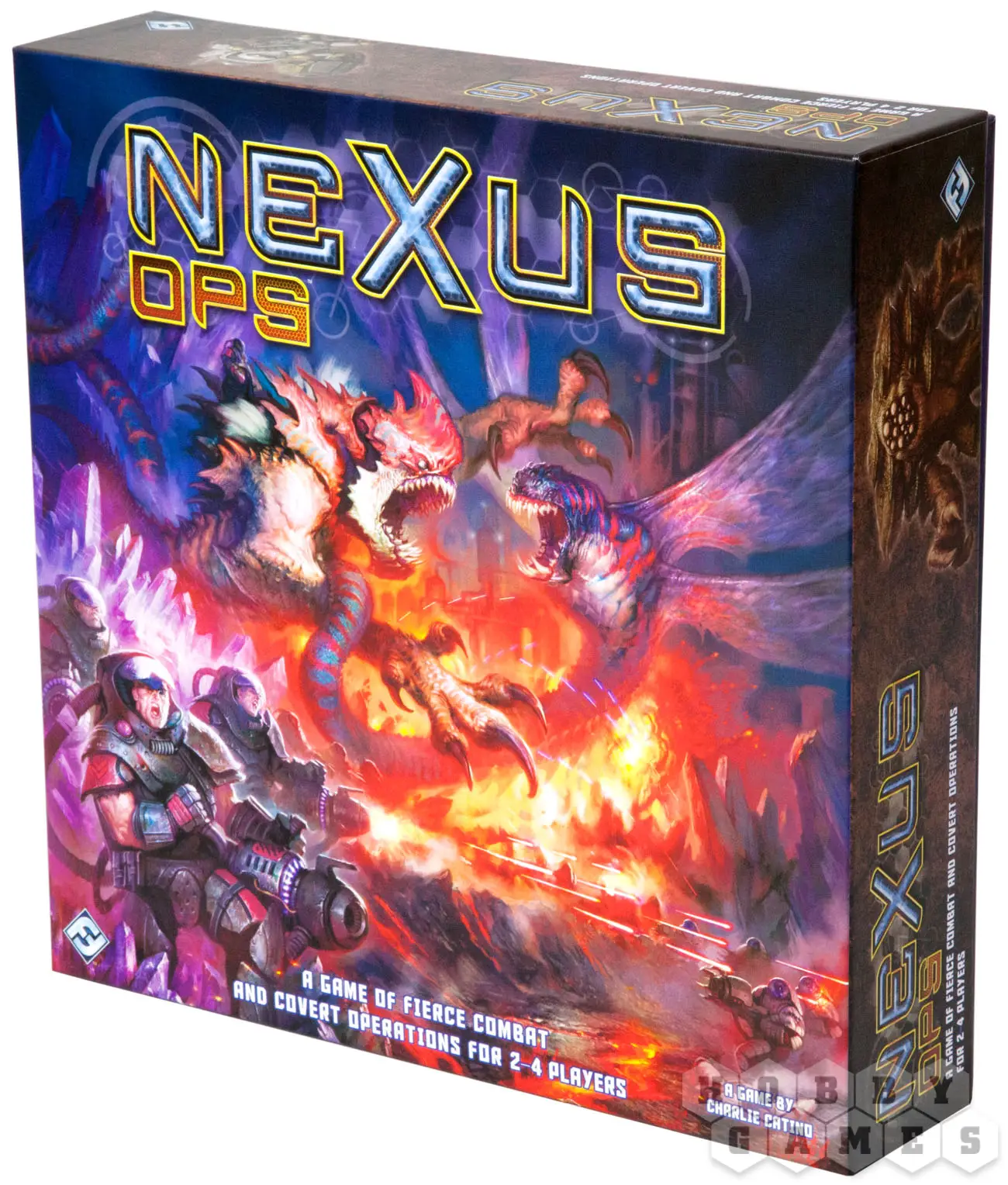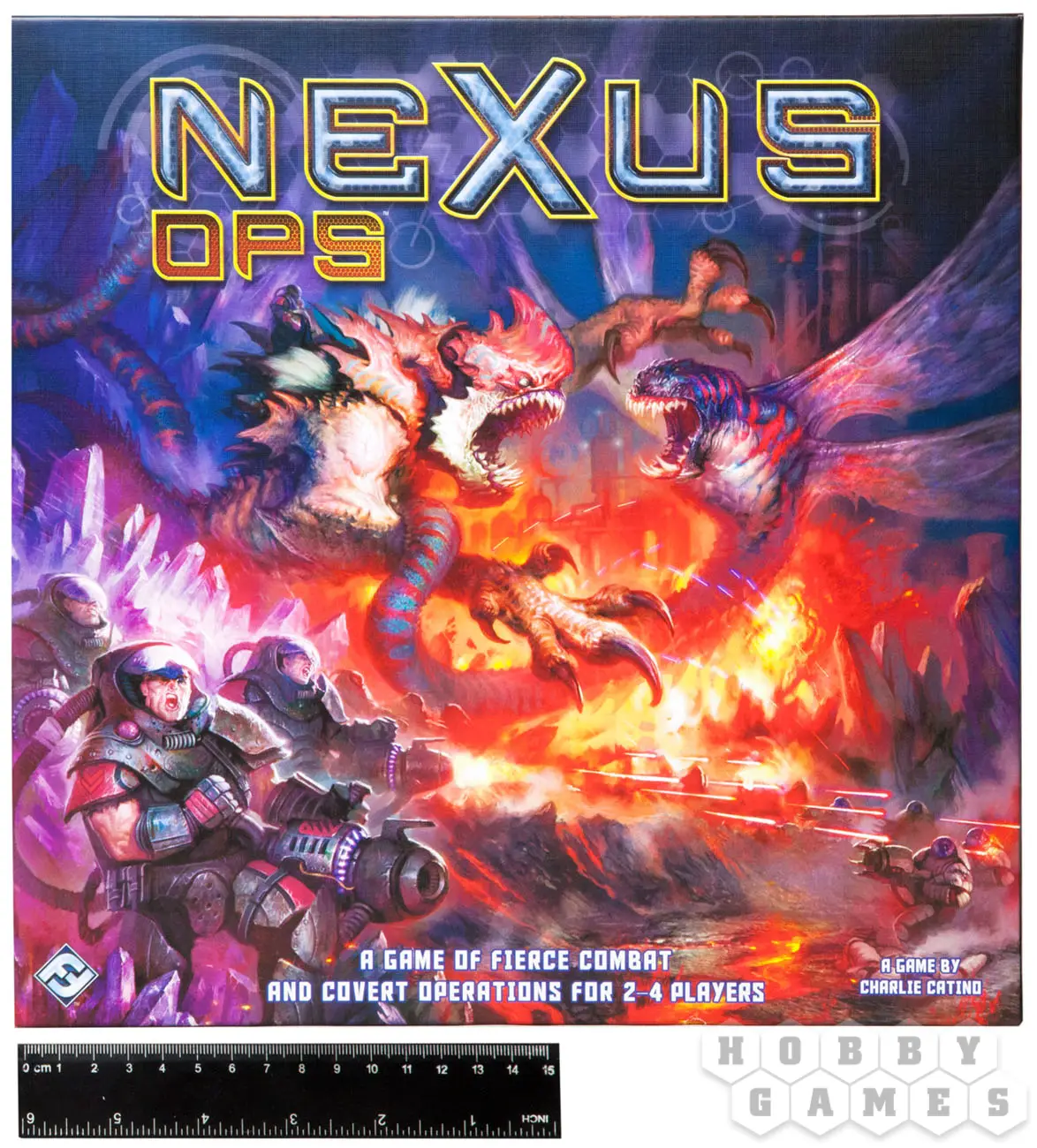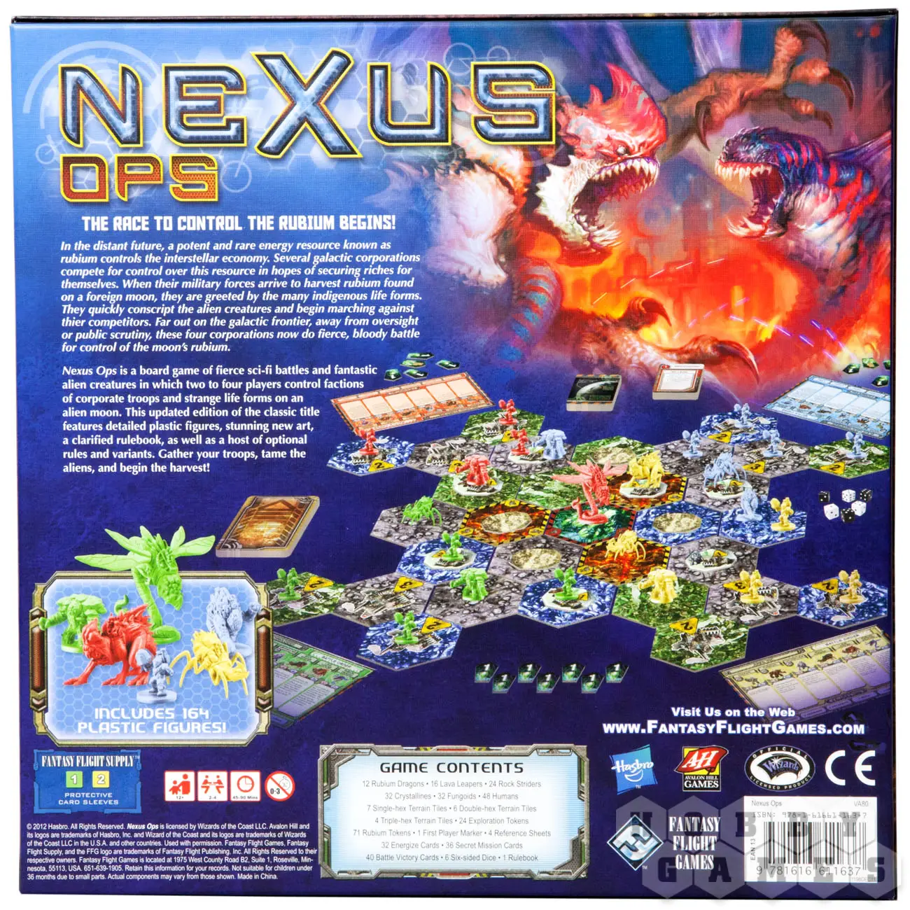 Настольная игра «Nexus Ops» - игра про ожесточённые сражения враждующих корпораций и инопланетных существ в сеттинге научной фантастики для 2-4 игроков. Игрокам предстоит исследовать мир, отсылая войска со своей главной базы, добывать ресурсы, подготавливать новые войска, призывать инопланетных существ, участвовать в сражениях и выполнять различные задания – всё для того, чтобы накопить достаточно сил для захвата луны, богатой ценным ресурсом.