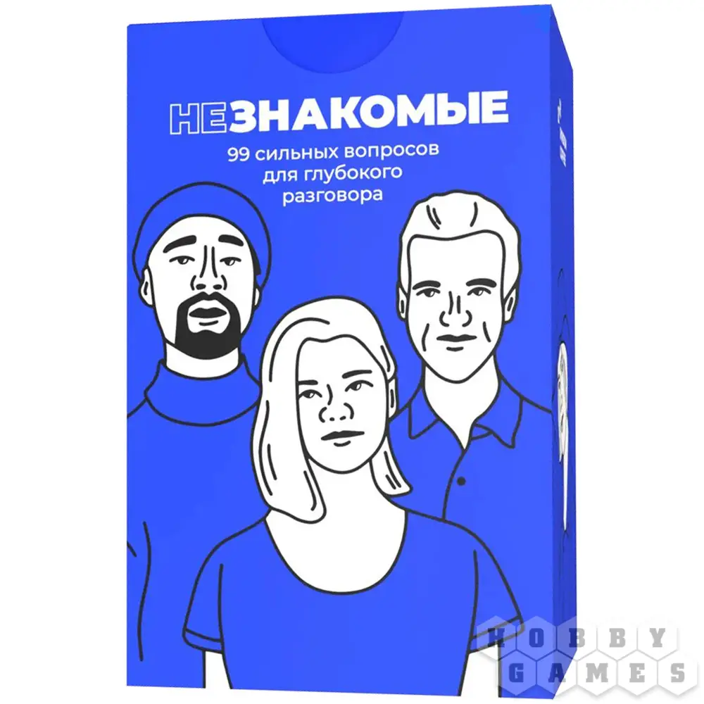 Карточная игра "Незнакомые" – это 99 разнообразных вопросов, которые помогут вам завести осмысленные беседы и узнать людей поближе. Разные наборы пригодятся в различных ситуациях: общие, но глубокие вопросы для лёгкого старта общения с новыми знакомыми и друзьями, вопросы для тёплой и откровенной беседы в кругу семьи и вопросы для тех, кто в отношениях, чтобы лучше узнать и услышать свою вторую половинку. С этой игрой вы сможете преодолеть барьер молчания.