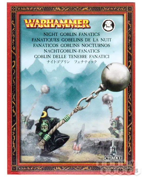 Есть среди Ночных Гоблинов особо крепкие безумцы - изуверы, негодяи, фанатики, одним словом. Их оружие - шары на цепи, настолько здоровенные, что в обычных условиях гоблину такой нипочем не поднять. Но стоит фанатику принять на впалую грудь чуть-чуть варева из крайне редкого и очень специфического грибка по имени "безумная шляпка", как сила гоблина увеличивается сверх всяких вероятных и невероятных пределов. Воодушевленный зельем и собственной отчаянностью, фанатик раскручивает свой шар и смертоносным вихрем вламывается в строй противника. В этом наборе вы найдете пластиковые детали для сборки трех шароносных гоблинов-фанатиков.