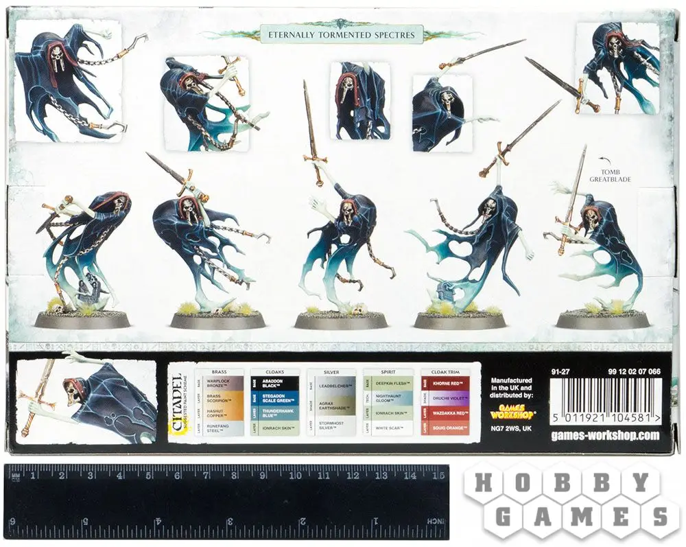 Этот многокомпонентный пластиковый набор содержит детали, необходимые для сборки 10 миниатюр Призрачных Мечников (Bladegheist Revenants). Пребывающие в вечных страданиях духи облачены в потрепанные мантии, рассеивающиеся в эфире, которые подчеркивают их хаотический безумный стиль боя. Их позы представлены в бросках и уворотах, цепи, связывающие их с Шаишем, свободно раскачиваются вокруг. Под складками их капюшонов виднеются металлические маски – в наборе содержится 10 различных, и они подойдут для любой детали плаща, а также 10 различных больших мечей.