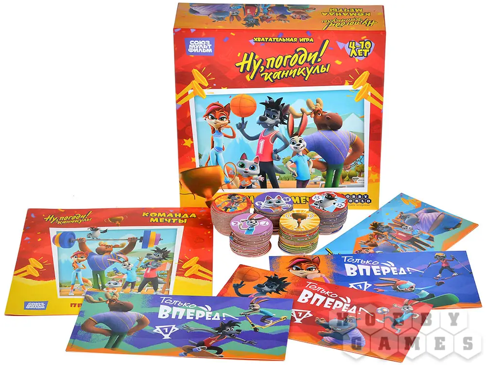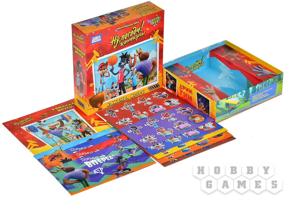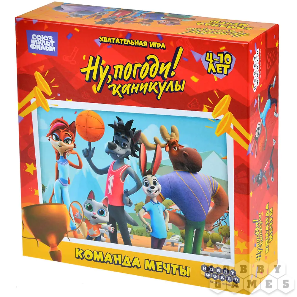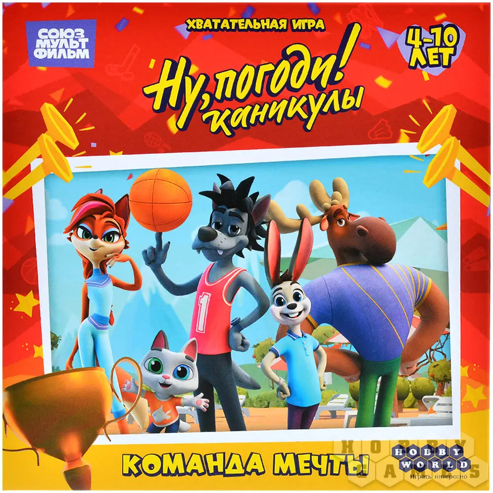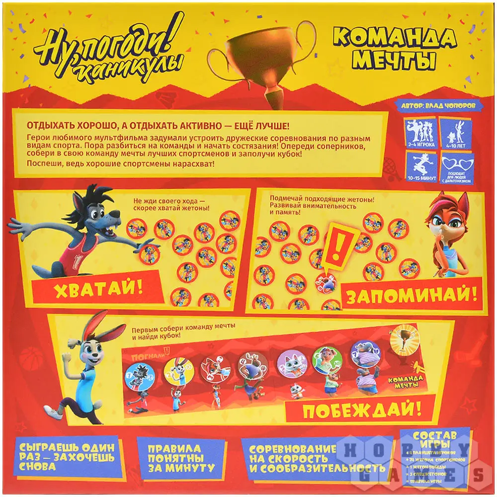 "Ну, погоди: Команда мечты" – испытание на скорость и сообразительность! Не ждите своего хода – скорее хватайте жетоны! Подмечайте подходящие жетоны, развивайте внимательность и память! Первым соберите команду мечты и получите заветный кубок!