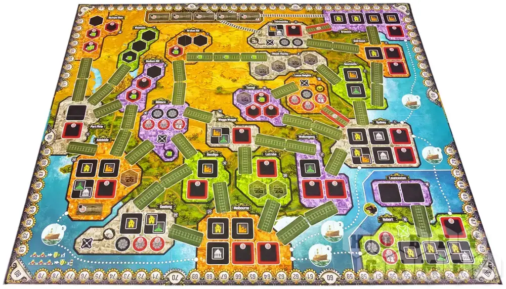 Ваш ход – это всегда выбор: строить, добывать или заряжать. Размещайте плитки действий, чтобы прокладывать железные дороги и активировать бонусы через цветовые совпадения. Заключайте контракты для мгновенных преимуществ, развивайте технологии и расширяйте сети городов. Ресурсы – талеры, рабочие и уран – нужно распределять мудро: они определяют ваш доход и влияют на конечный счёт. Игра продолжается до выполнения двух из пяти условий финала, таких как разблокировка всех технологий или достижение семидесяти очков.