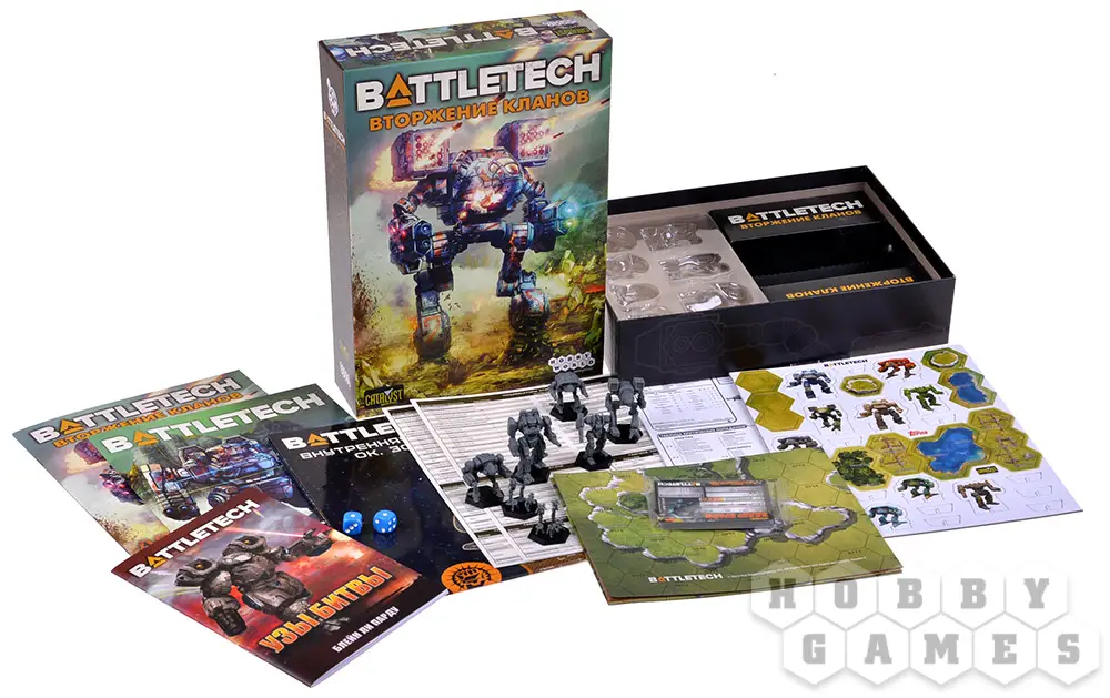 "BattleTech: Вторжение кланов" расширяет игровые возможности базовой BattleTech, вводя в игру новые фракции, мехи и предлагает стать участником масштабного конфликта, пошатнувшего целую галактику. Во "Вторжении кланов" вас ждут 5 новых детализированных миниатюр омнимехов: "Монгрел", "Экзекутор", "Нова", "Эддер" и "Тимбер Вулф".