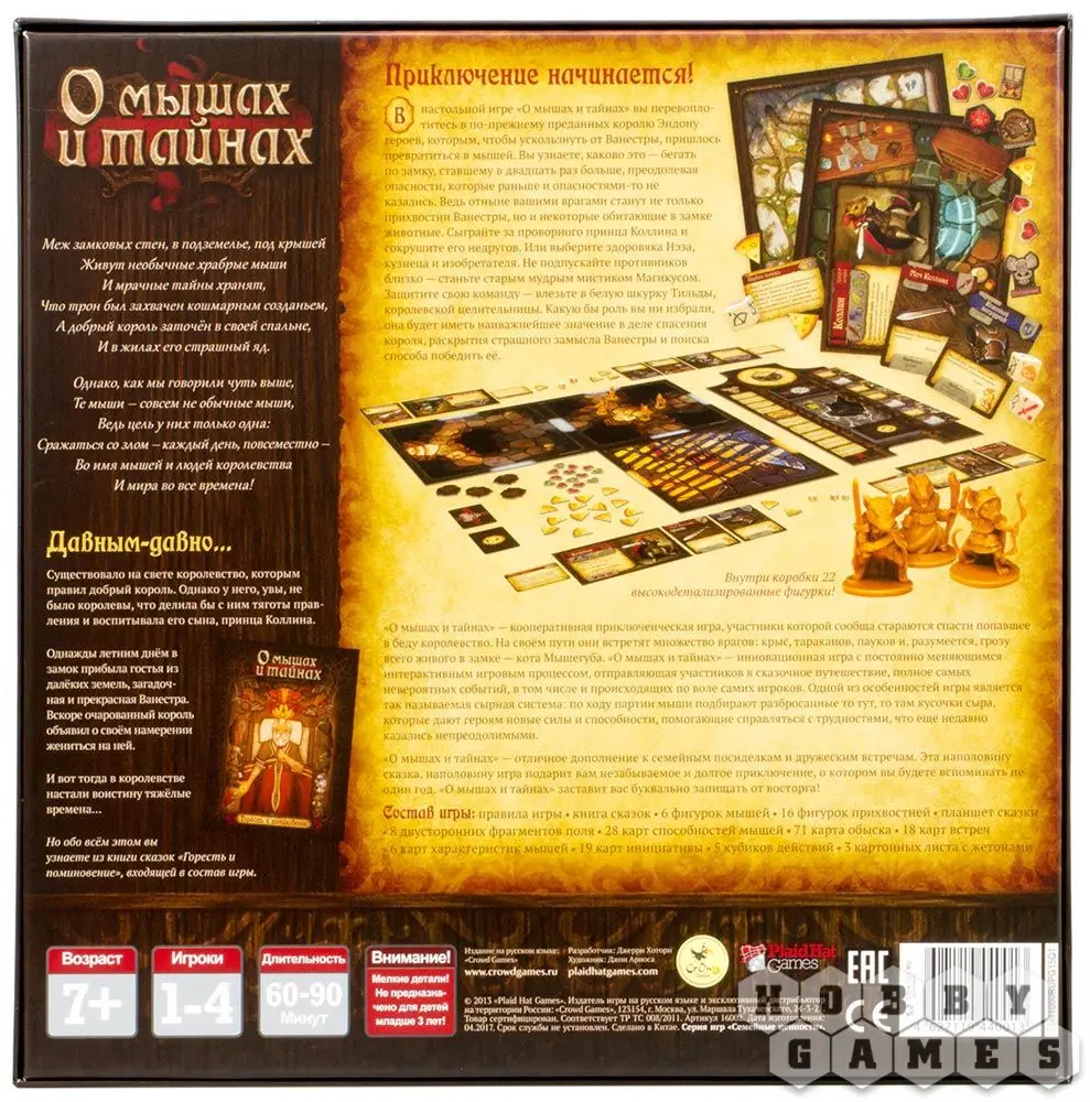 Правила игры "О мышах и тайнах" очень лёгкие и позволяют начать игру без опыта и подготовки. Игроки выбирают понравившуюся им главу книги сказок, формируют зону для игры из подходящих фрагментов, выбирают за кого они хотят сыграть. Выбор главы сильно влияет на игру, ведь у каждой из них свои условия победы и дополнительные правила. Кроме того, сюжет разных глав движется по-разному, часто по воле самих игроков, что делает каждую партию уникальным путешествием.