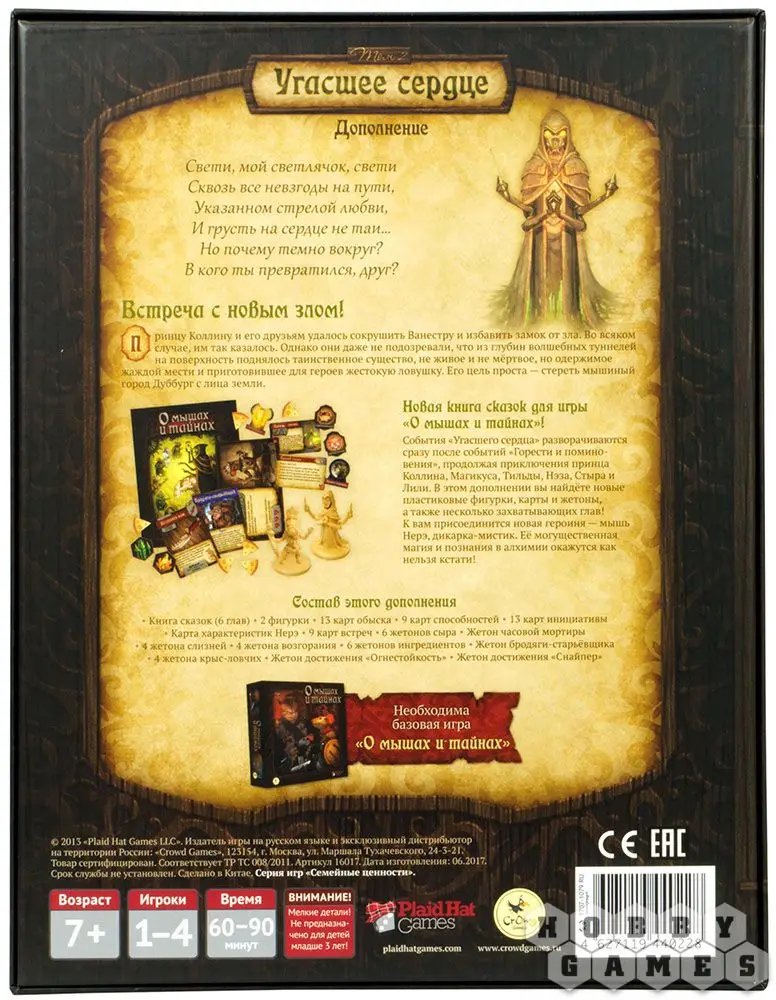 В дополнении "Угасшее сердце" мышат ждет захватывающая сюжетная история, два новых героя с миниатюрами, а также новый злодей, новые карты и жетоны.